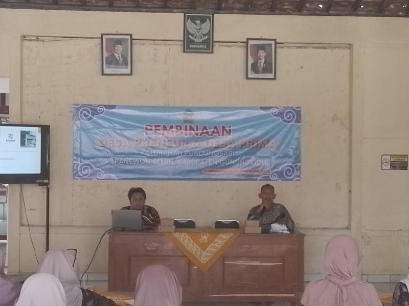 Kegiatan pelatihan yang dilaksanakan di Aula Kalurahan Pundungsari ini diikuti secara antusias oleh seluruh anggota kelompok desa preneur. Pelatihan ini menghadirkan dua narasumber berkompeten dari instansi dan media yang berbeda, guna memberikan wawasan yang komprehensif.